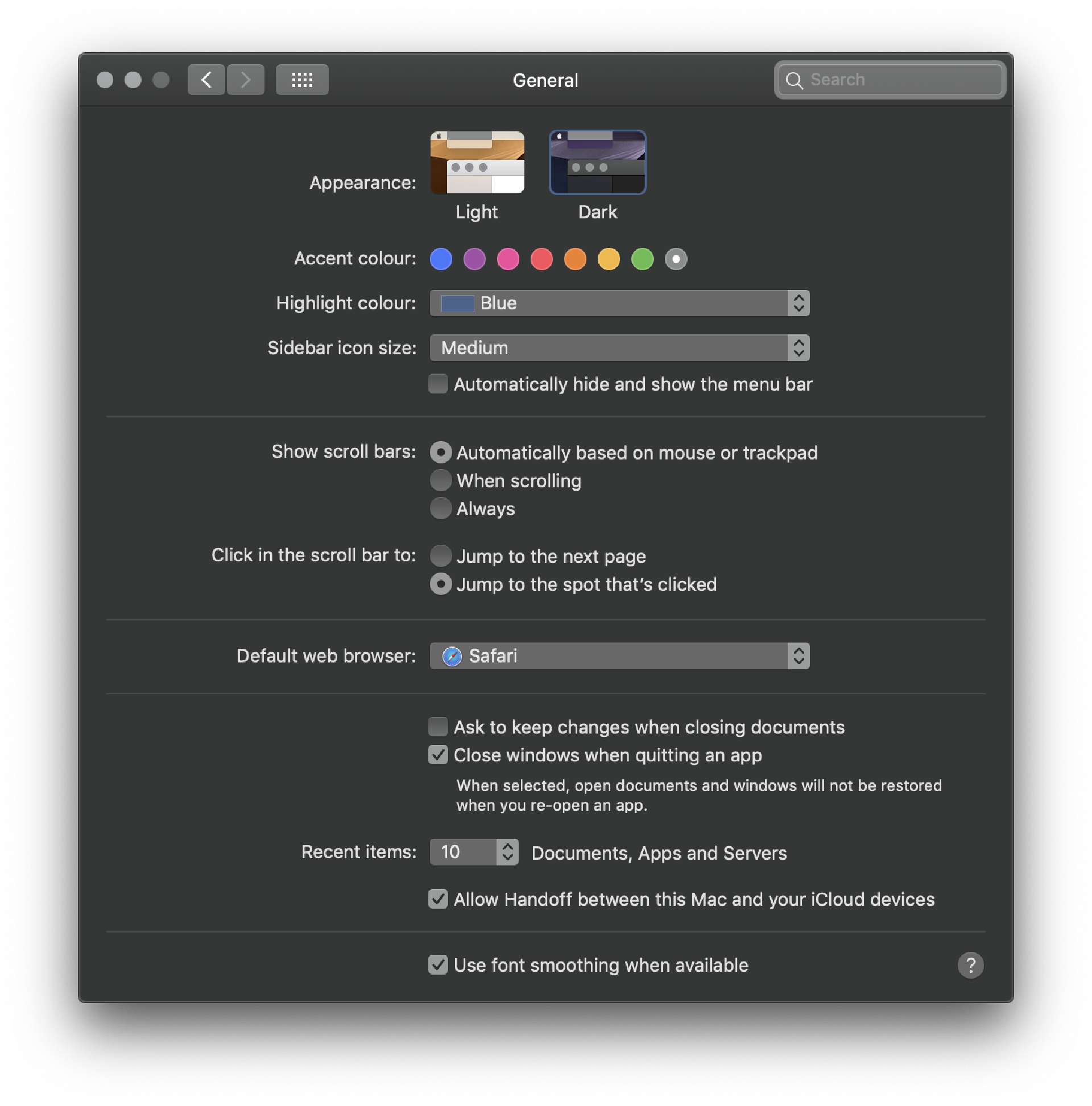 Viele Webbrowser2 unterstützen auch diesen Dark Mode. D.h. sie können — je nach Einstellung des Betriebssystems — ein anderes Design für eine Website darstellen.